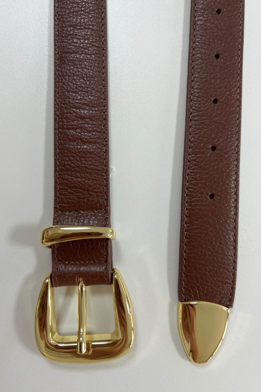 Cinto feminino 100% couro com fivela em metal folheado e ponteira.
