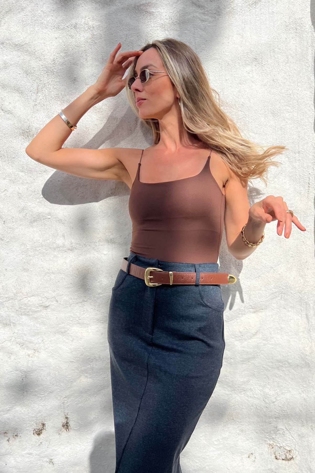 Body feminino versátil com bojo removível, alças finas elásticas, flexíveis e confortáveis.