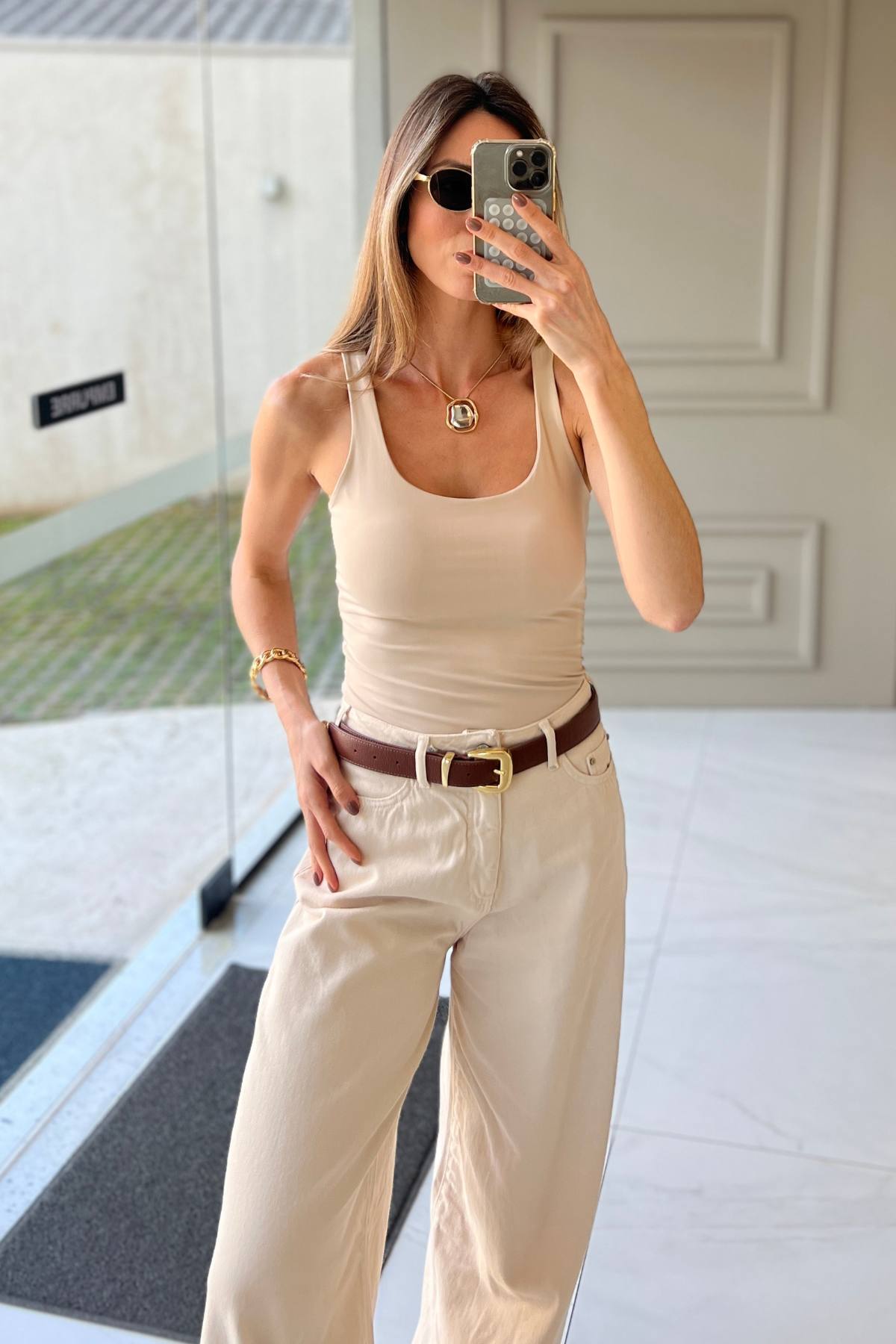 Blusa regata feminina, alças largas, malha com toque frio, respirável em polimida premium.