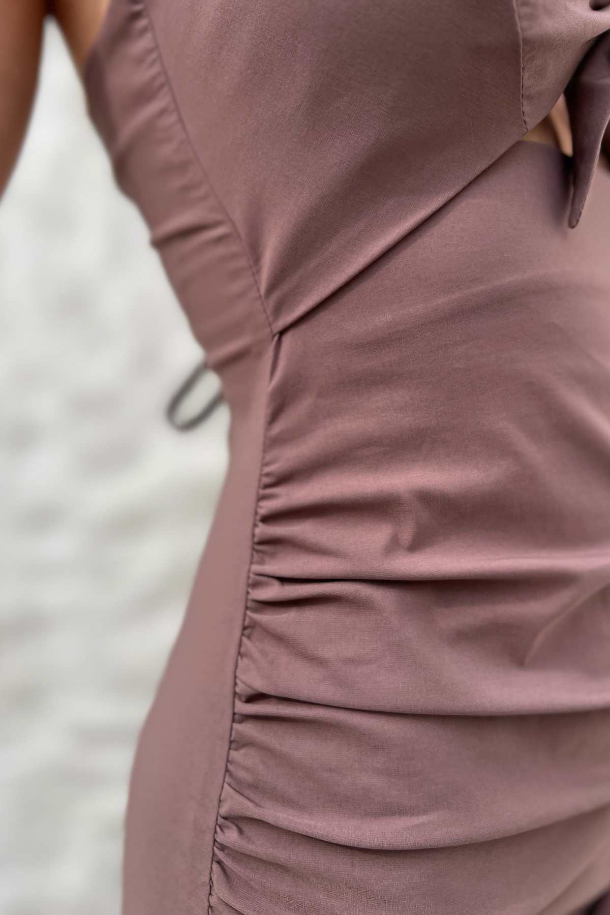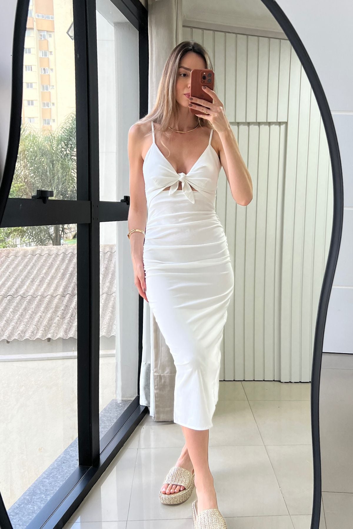 Vestido Midi em Poliamida Drapeado e Amarração no Busto Daniela